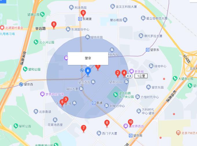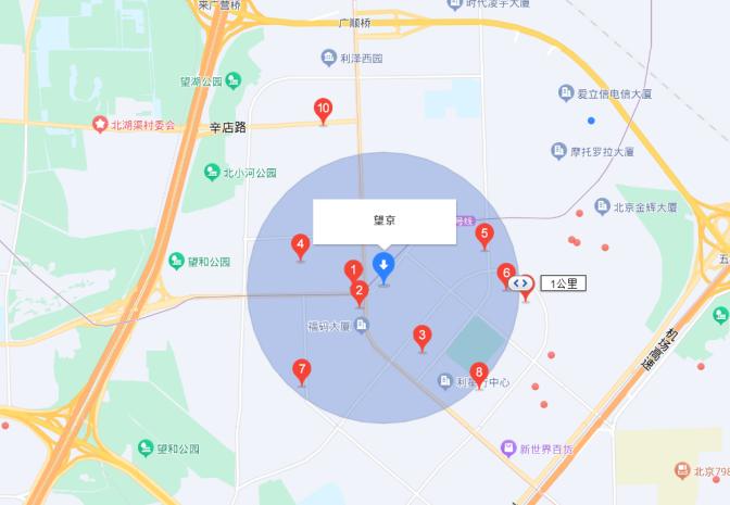 以居住和办公融合的望京商圈为例,氢消费发现,在望京商圈中,门店数量排在第一位的是便利蜂,拥有至少17家门店数量。(注:地图上未标注数字的红色圆点也代表一间便利店),紧随其后的是7-11,拥有门店数量超过10家,而罗森在望京商圈中的门店数仅为5个。