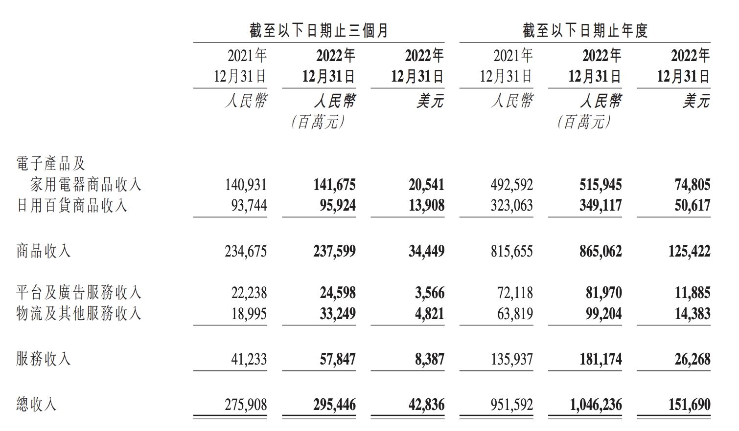 京东Q4收入细分