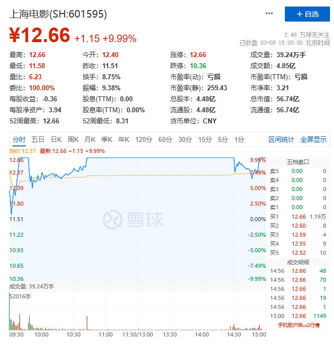 TVB母公司股价的暴涨效应传导到A股,也带动了相关影视公司股价的走高,其中搭上传媒股和国企混改双快车的上海电影,股价更是在3月8日直接涨停,3月9日也接连封板,摇身一变成为A股最靓的仔。