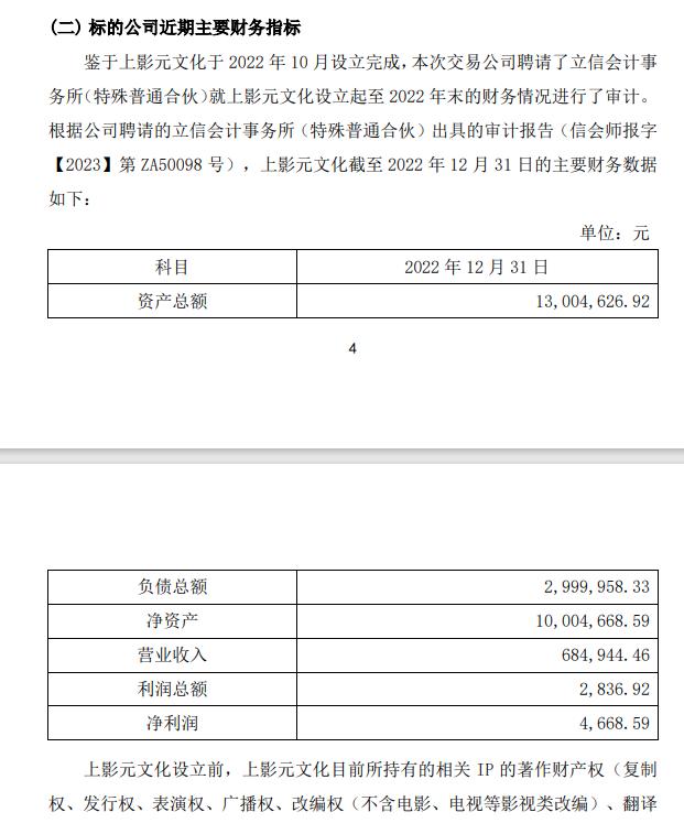 这取决于怎么看的问题。如果短期来看, 上影元文化的财务数据表现并不会很好,成立时间又短,给出过亿元的估值并不合适,而且上影元文化是上海电影母公司上影集团的控股子公司,这个并购涉及到关联交易,因此有质疑的理由。
