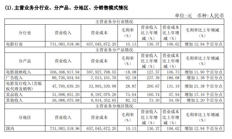 以2021年的年度财报数据为例,院线业务的电影放映、广告和卖品收入合计6.27亿元,占总收入7.31亿元的比重为85.77%;而包含版权在内的发行业务收入4779.06万元,占总营业的收入约为6.5%,从这个数据我们也看到影院相关的收入占上海电影总收入的绝对大头,业务单一化的现象比较严重。