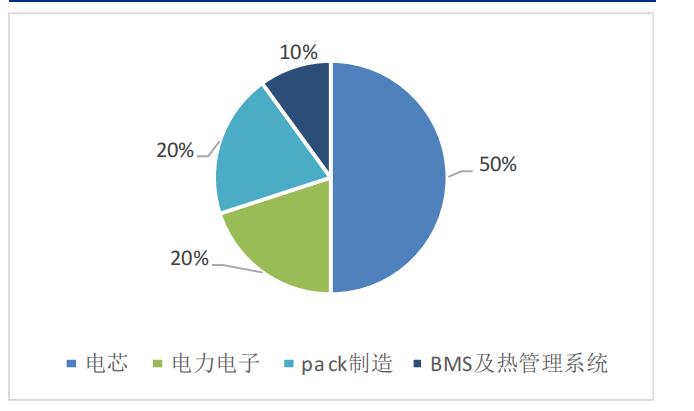 电池成本占新能源车成本比例达 40%, BMS 及热管理系统占比 10%,BMS占比6%~8%。