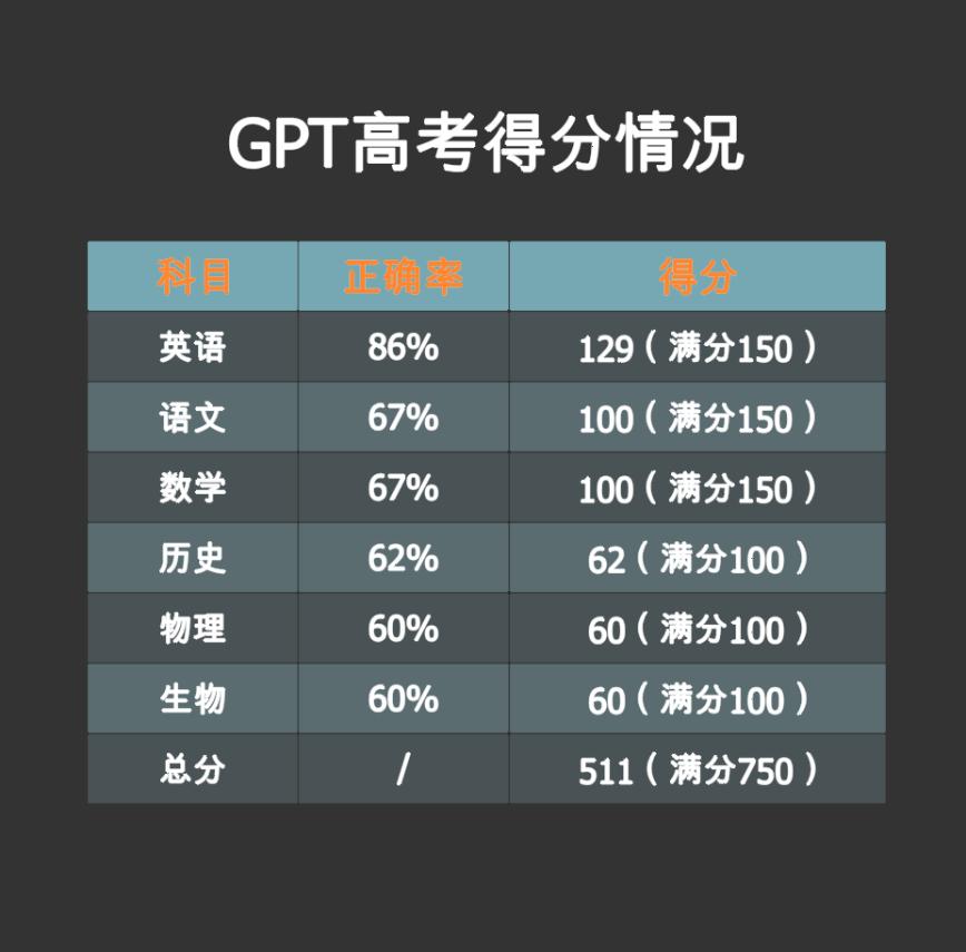 综合表现看,如果ChatGPT作为一名北京高考生来说,应该可以达到511分,京内高校约等于北京中医药大学的录取分数线。京外211高校里,约可以考上新疆大学。