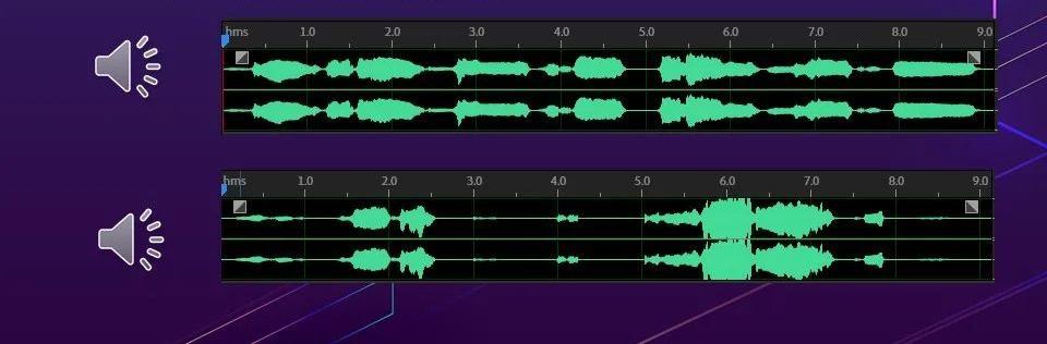 没有感情(上)与有感情(下)的演唱音频波形图,真实演绎“全是感情” | 参考文献[6]