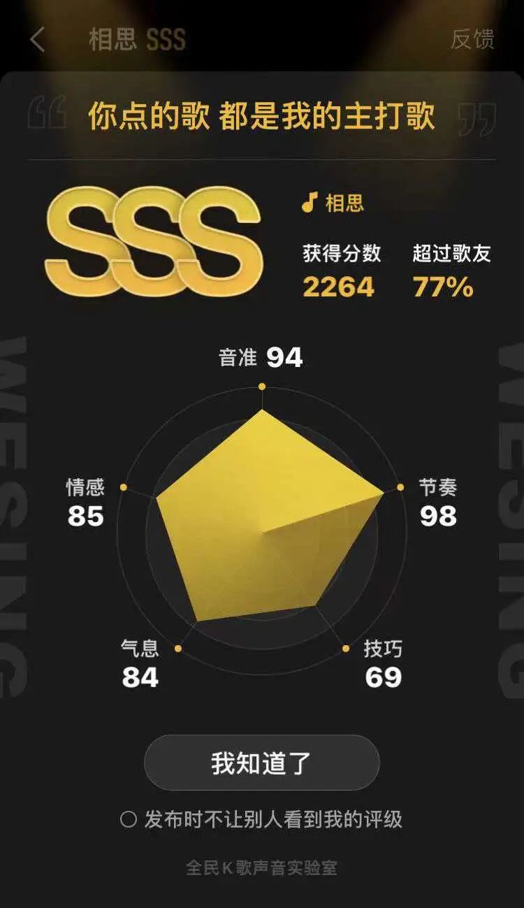 而作为普通用户的我,仍旧习惯用歌声自娱自乐,也娱乐他人。至于唱得好听吗?屏幕显示出的那串分数,也许并不那么重要。