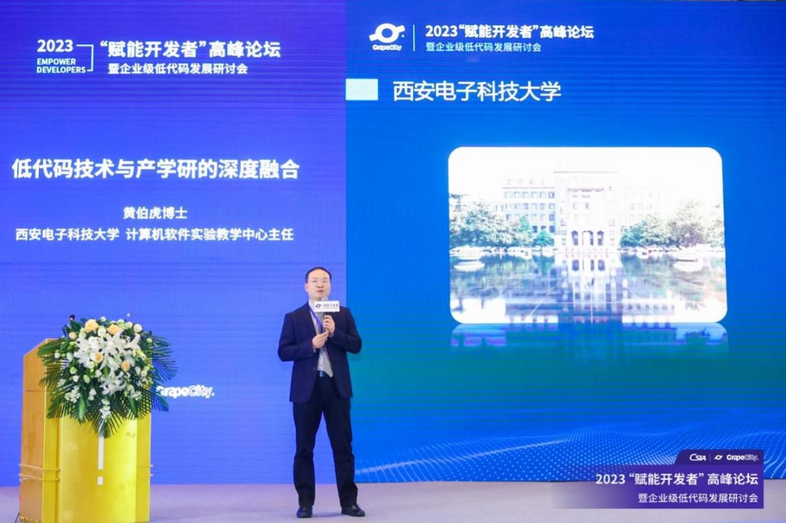西安电子科技大学计算机软件实验教学中心主任黄伯虎博士带来《低代码技术与产学研的深度融合》分享,他表明通过低代码技术和产学研的深度融合,能够加速促进科技创新成果转移转化,为行业输送更多的高质量复合型应用人才。