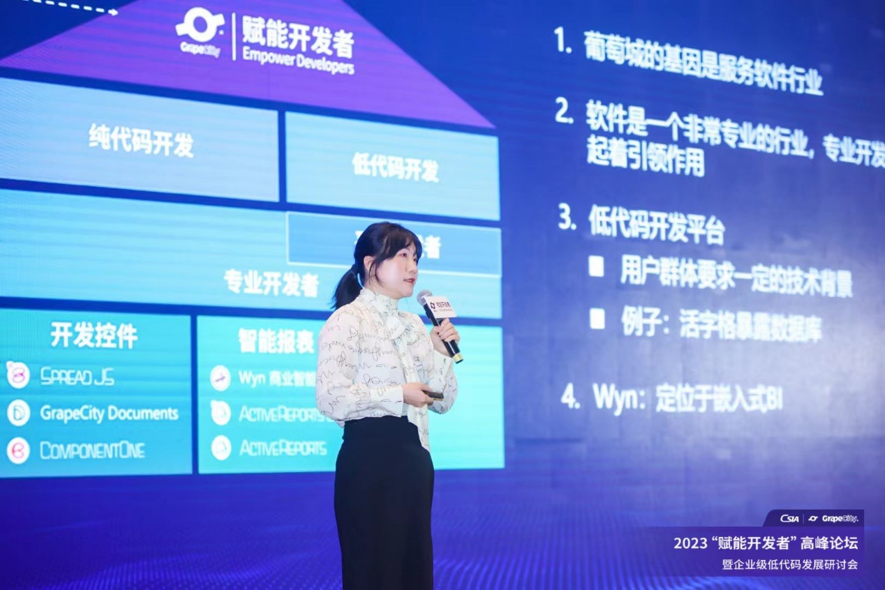 倪爱军先生提到,在产品层面,葡萄城专注软件开发技术40余年,深入贴近用户需求,匠心打磨技术,并且不断把握技术趋势、引领前沿技术。早在业界开始有“低代码”概念之前,葡萄城就基于对市场的观察和对用户未来需求的分析,启动了“活字格”的开发;而Wyn商业智能软件专注“嵌入式”这一领域,也是葡萄城把握嵌入式分析的市场趋势、致力于解决用户痛点的结果。