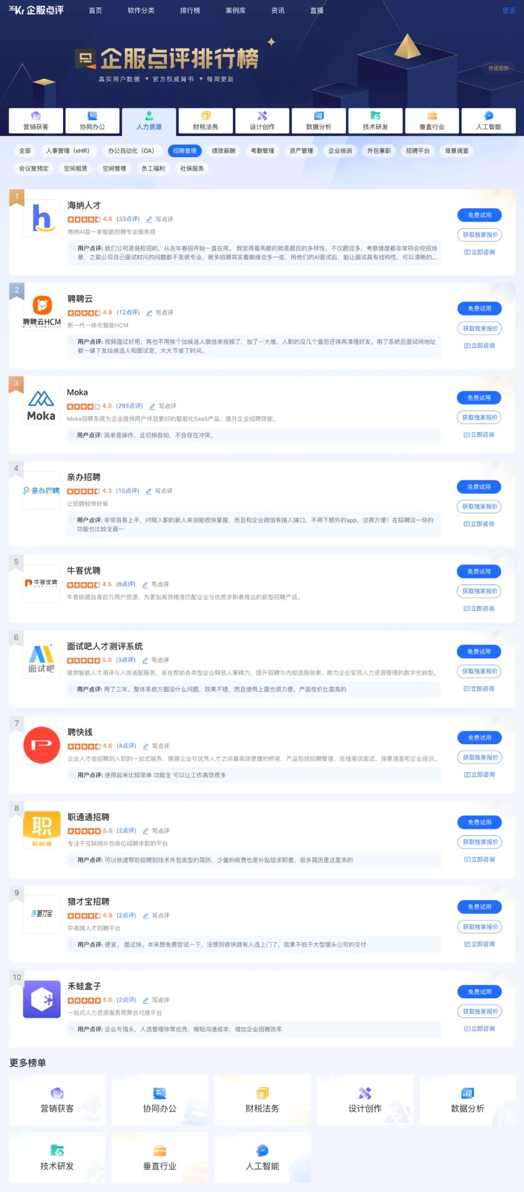 36氪企服点评平台支持客户规模、产品功能、评分、满意度、排行榜等分类筛选查看相关软件,另外还有软件对比等更多功能。