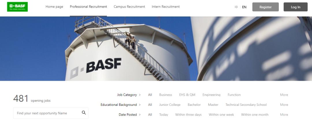 巴斯夫搭建了支持中英文双语切换的系统及招聘平台。候选人还可以从招聘平台跳转至巴斯夫企业页面,了解企业动态、人才发展等信息。