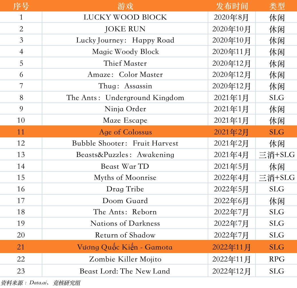 此外,2022年三七互娱在国内发行的《小小蚁国》,其研发商星合互娱成立至今不过4年。而根据第三方平台统计,星合互娱发行的游戏数量超过20款,主要是休闲游戏和SLG游戏。