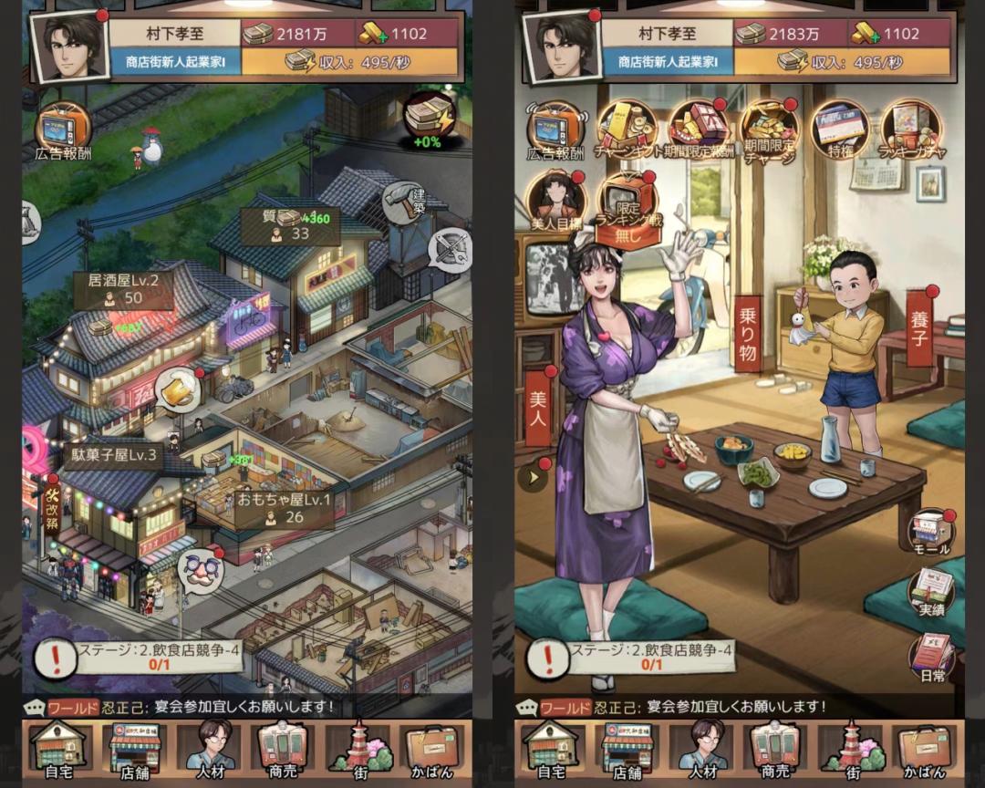 而这一创作思路在三七互娱新作——《下町ドリーム~心に染みる人情物語》身上,也有着明显体现。该作是一款模拟经营产品,游戏玩法延续了《叫我大掌柜》的基础框架,但在素材上采用了契合日本文化的和风。