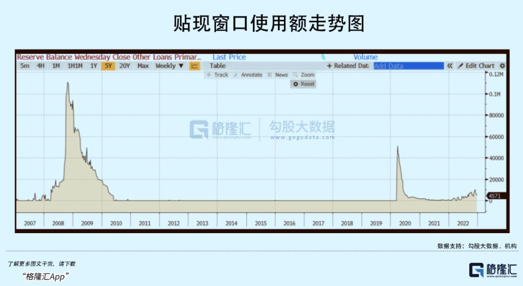 除此之外,美国一些银行还去美联储敲贴现窗口去借钱。美联储贴现窗口旨在为银行提供紧急流动性,扮演的是最后贷款人的角色。也就有所谓“污名效应”——一旦银行使用该工具,投资者会怀疑银行是否存在严重的流动性困难、财务紧张等问题。