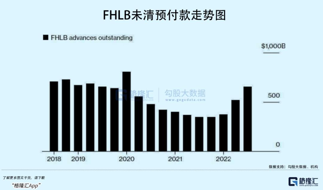 到去年三季度末,FHLB预付款高达6550亿美元,较2021年末大幅提升86%,已经回到新冠疫情之前。FHLB在美国银行体系内的地位有些类似美联储的存在。而它们预付款的不断扩张,也代表着银行体系流动性趋于紧张。