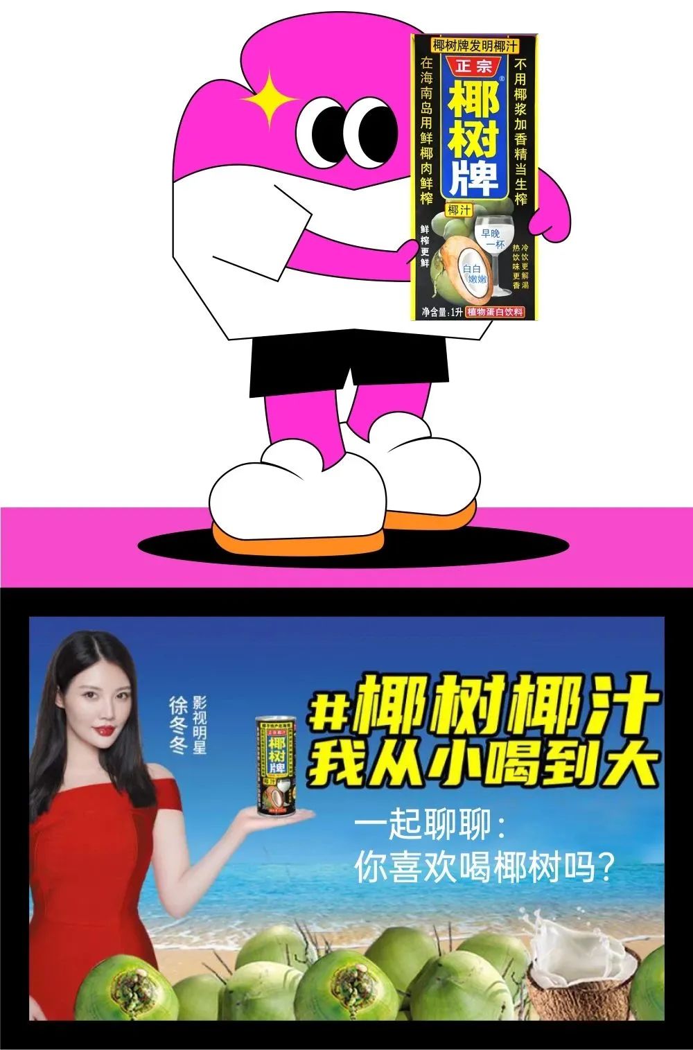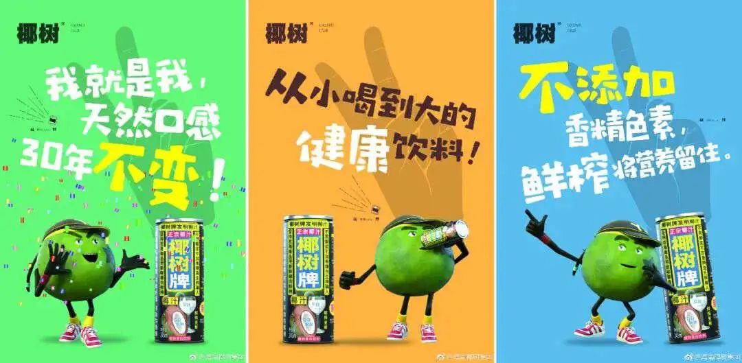 2018年,为了贴近年轻人,椰树还曾趁着说唱节目的热度,做过一条卡通说唱广告,并发布了画风正常、正在唱跳的拟人椰子海报。