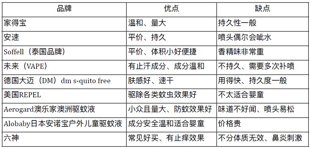 ▲小红书博主Cilia-Cii总结的多款驱蚊液户外评测。(懒熊体育/制表)