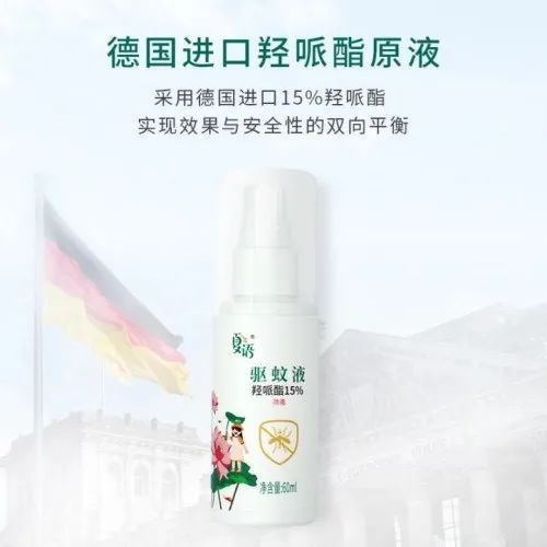 ▲主要成分为德国进口羟哌酯(又名派卡瑞丁)的夏语驱蚊液。