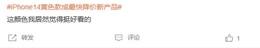 微博话题:iPhone14 系列黄色款成最快降价新品