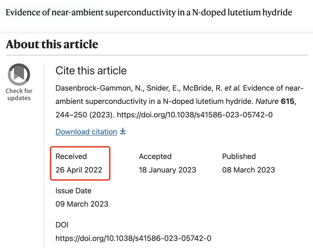 其实,Ranga Dias早在一年前的Golden Conference就讲过镥-氮-氢的实验结果,包括在Nature上文章的投稿时间也是2022年4月26日。