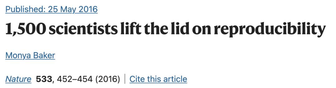关于研究可复现问题,Nature在2016年做了一个详细调查,称超过70%的研究人员无法复现其他科学家的实验,甚至有一多半的人无法复制自己的实验。