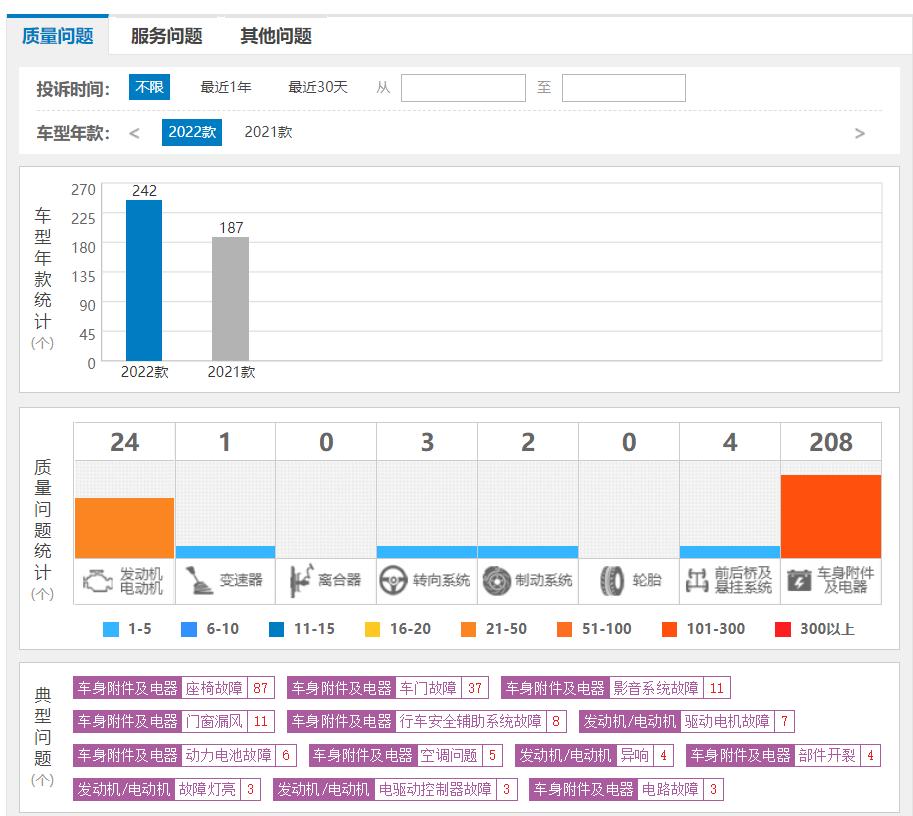 至于质量方面,座椅故障、车门故障、影音系统故障、动力系统故障以及OTA升级后问题等,还有待厂家进一步反馈。