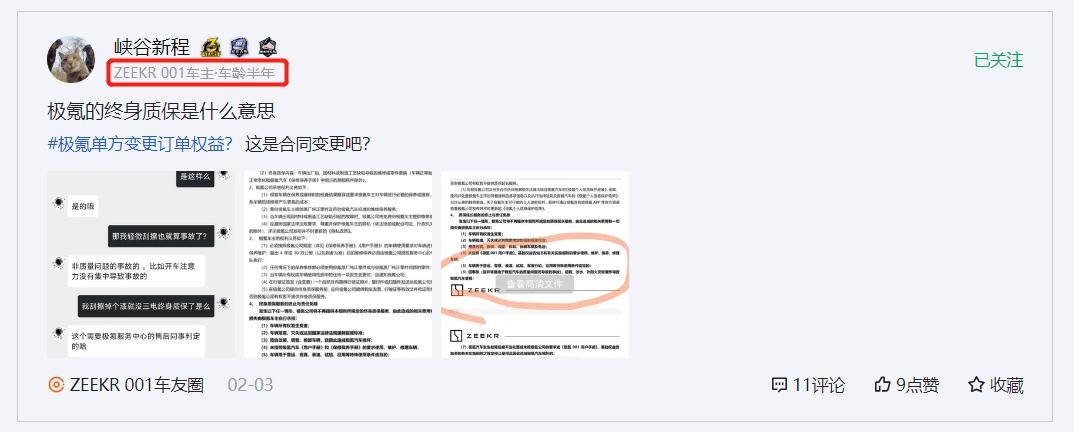 网友“极氪私改合同骗我5000”在懂车帝极氪OO1车友圈发帖“极氪001下定后,购车合同随意变更”。
