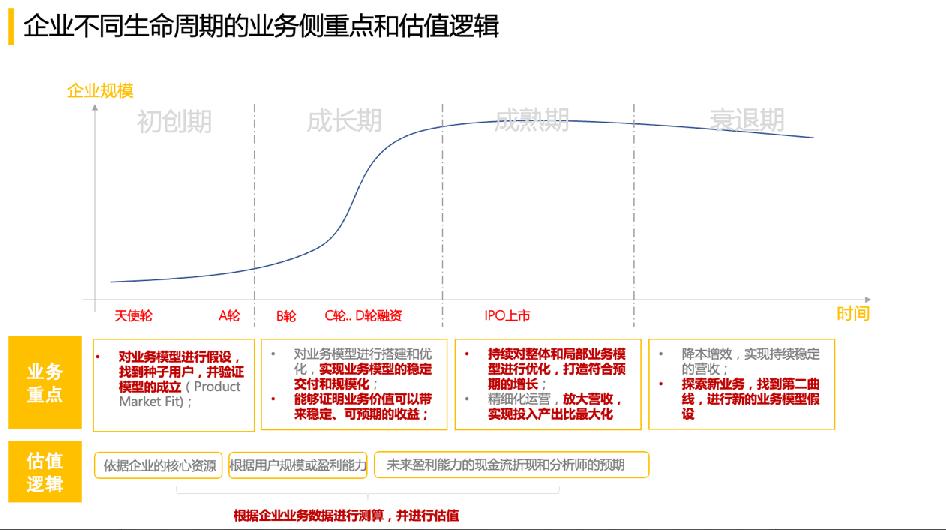 这一时期,从估值逻辑来看,企业一般到了要IPO(首次公开募股),或已经完成了上市的阶段。