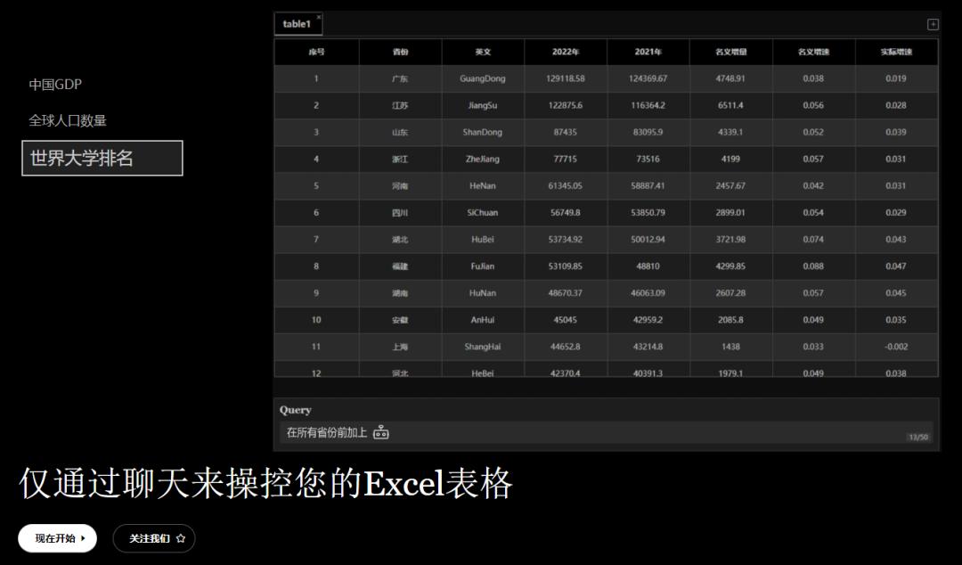 他们把 ChatGPT 和 Excel 表格工具 “啪的一结合”,整出了一个 AI Excel 工具出来,真正做到了通过和 AI 聊天,来检索表格中的有效信息。