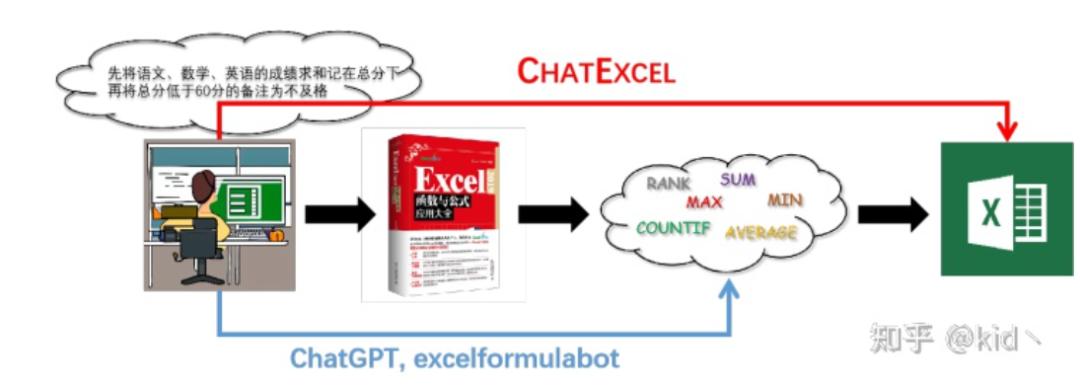 在开发者 @kid 的知乎回答中,用一张简单的图片表达了 ChatExcel 最精髓的作用:让你直接和 Excel 表格进行一个有效的沟通,它越过了你学习各种 Excel 函数和公式的过程。