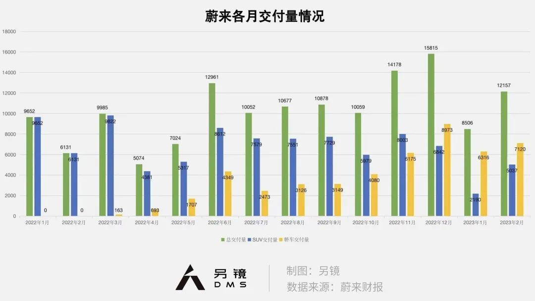 “主销的ET5、ET5旅行版和ES6目标是合计月销2万辆;ET7、ES7、ES8,每款车月销2000至4000辆,合计月销8000至1万辆;表现个性的EC6、EC7合计月销1000至2000辆。”李斌在3月1日晚财报电话会上说道。