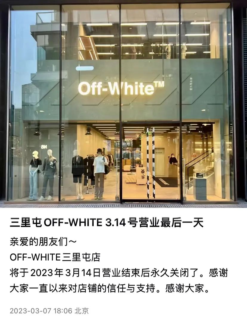 据Off-White北京三里屯太古里店小红书官方账号,该门店将于今年3月14日营业结束后永久性关闭。