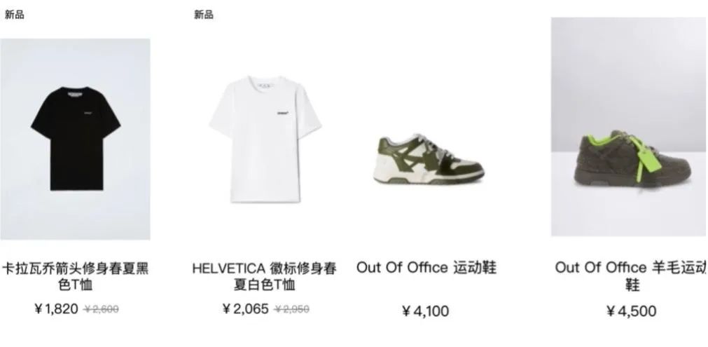 Off-White部分商品价格。 图片来源:官方小程序商城截图