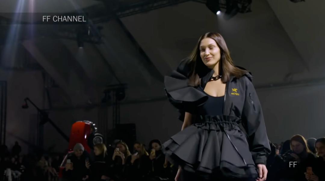 LV 2020秋冬男装闭幕式上,已故艺术总监、off-white主理人Virgil Abloh上台致谢时,穿着的不是自己名下的品牌,而是一件蓝色始祖鸟冲锋衣。