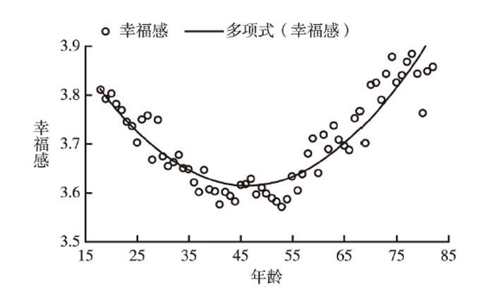 2021年《劳动经济研究》上的一个研究也显示,青年人和老年人的幸福感大概在3.8,40~50岁的中年人的幸福感却只有3.5。