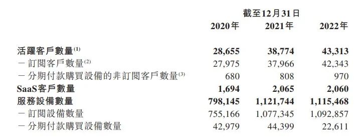 2020年、2021年及2022年,易点云的随用随还办公IT租赁综合解决方案分别拥有订阅企业客户约2.8万家、3.8万家及4.2万家,可调度的订阅设备分别约为80万台、110万台及110百万台。每台订阅设备于相应期间产生的平均收入为983.2元、1089.1元及1073.8元。