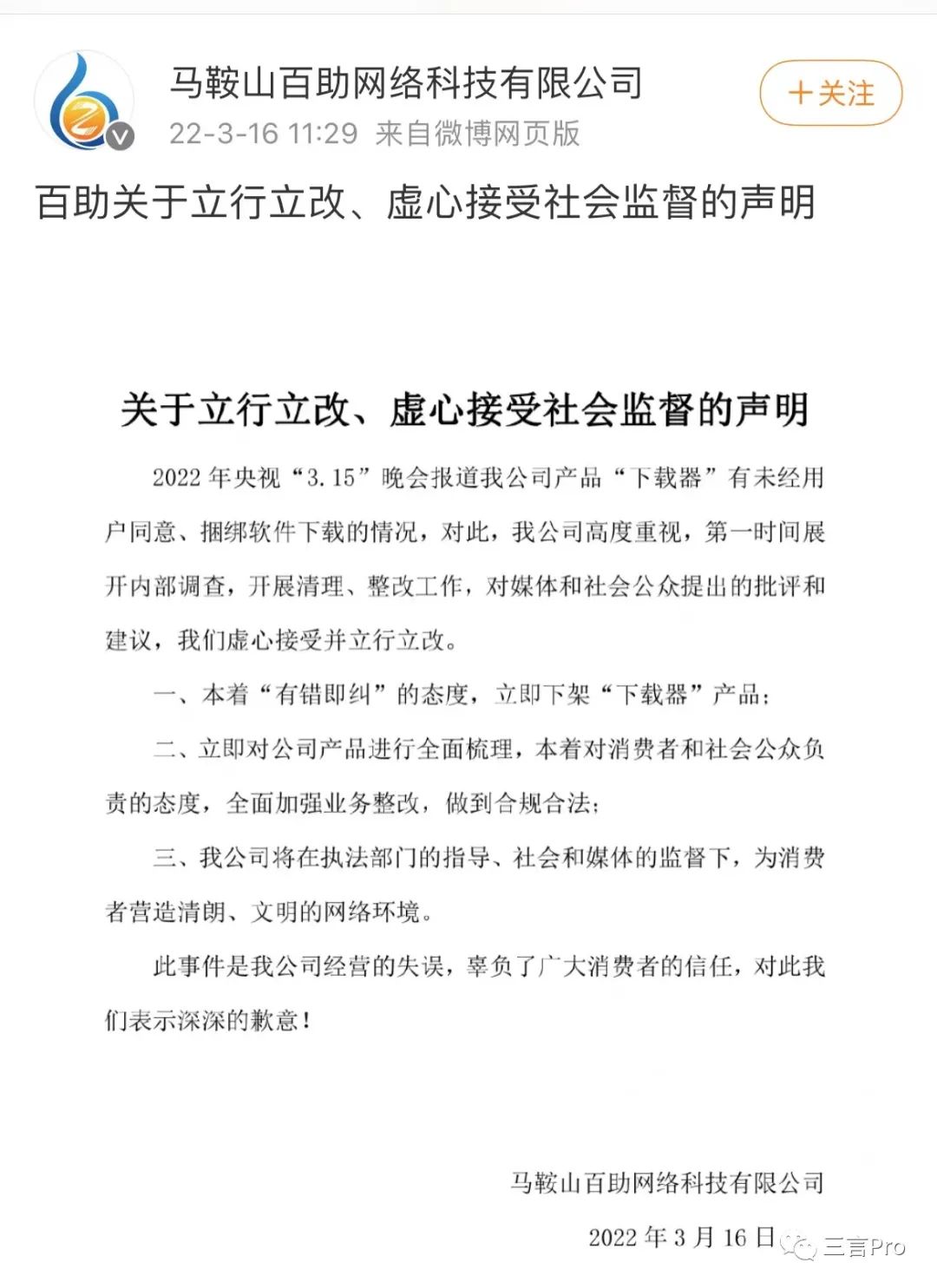 去年,百助网络科技有限公司被点名,上面这些下载站都使用了其旗下研发的下载器。