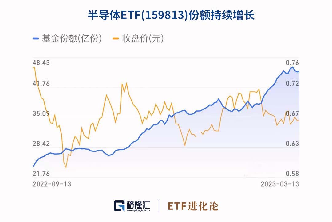 半导体行业经历调整后,今年来半导体ETF涨6.69%,领涨于市场,其份额不断增长,资金也一直在流入。