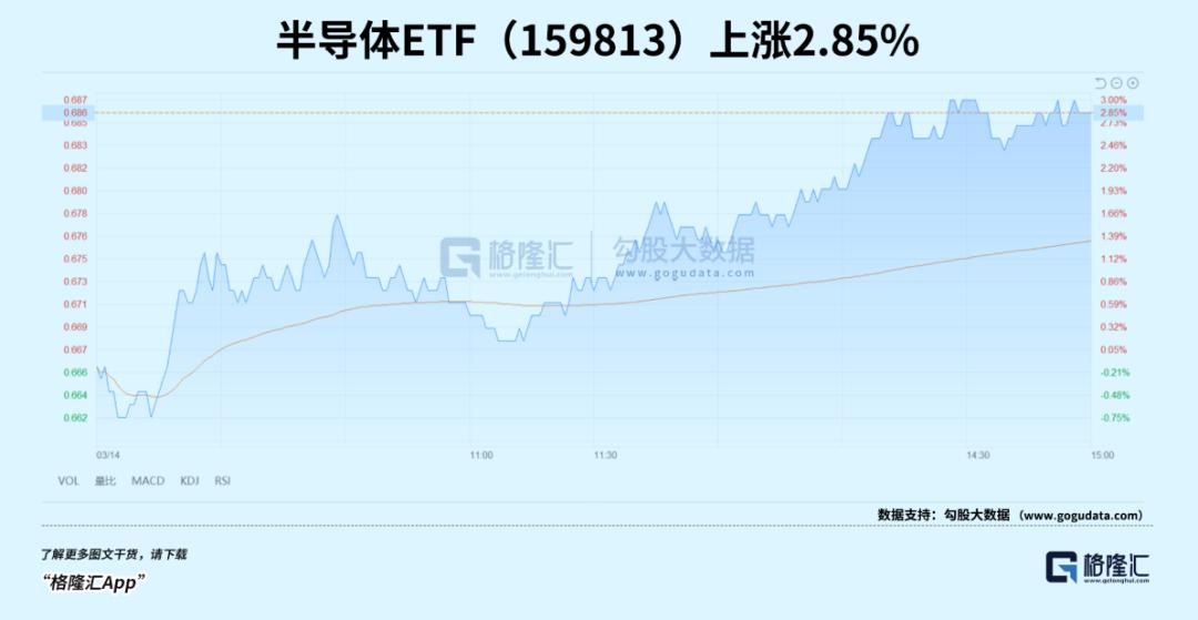 甚至,在三大指数一度跌幅超1%的背景下,专门跟踪半导体行业的半导体ETF(159813),也都涨了2.85%。