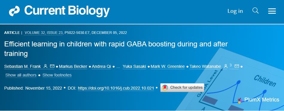 Frank, Sebastian M., et al. "Efficient learning in children with rapid GABA boosting during and after training." Current Biology 32.23 (2022): 5022-5030.