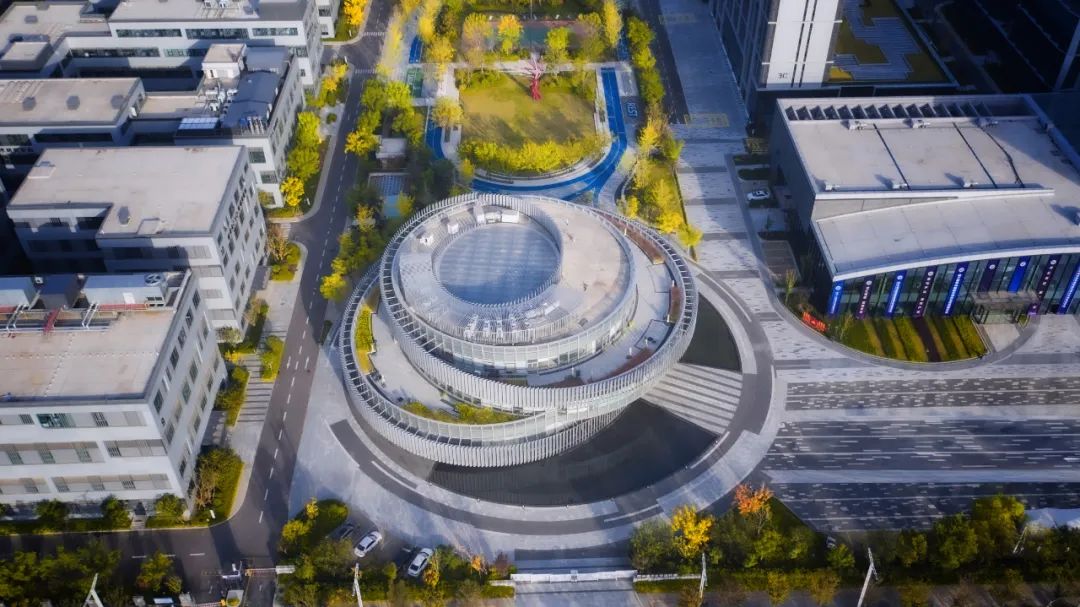 映入眼帘的园区展示中心,建筑结构就透露了生物医药的基因,类似DNA双螺旋结构。据介绍,该展示中心曾获国际设计大奖,可见园区从规划建设开始就瞄准了临空国际视野。