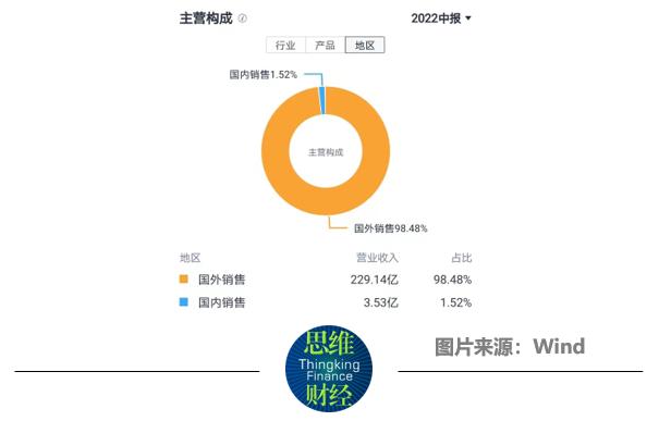 值得注意的是,九安医疗对美国市场的依赖较大。2022年中报显示,九安医疗2022年上半年的营业收入为232.67亿元。其中国外销售收入达229.14亿元,占比接近99%,在美国业务的占比较大。