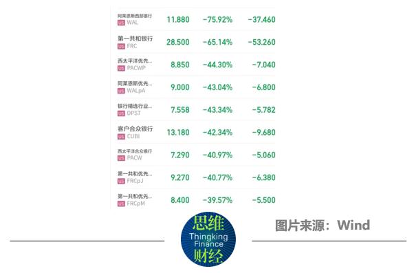 而在上周,阿莱恩斯西部银行(WAL)的跌幅也高达34%。第一共和银行(FRC)还表示已从美联储和摩根大通获得额外流动性,财务状况得到进一步增强。