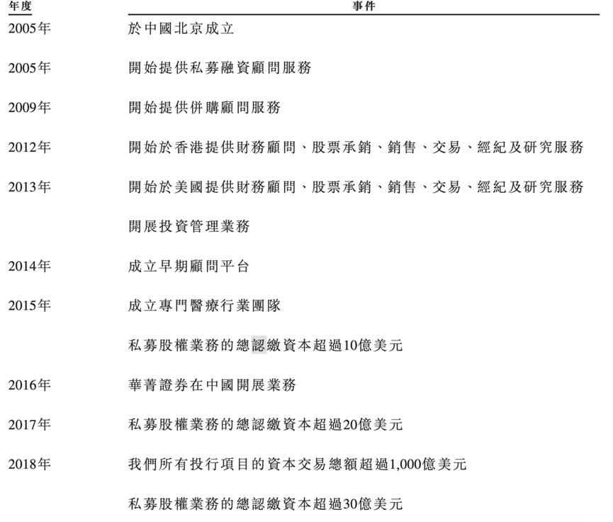 这一点包凡看的很明白,看看华兴资本的重要节点,2005年内成立,2009年开始做并购服务,2013年开展资管业务,2015年AUM就到了10亿美元,2018年香港IPO,基本上两年一个台阶。