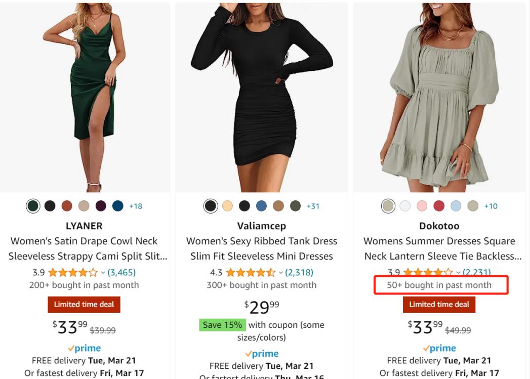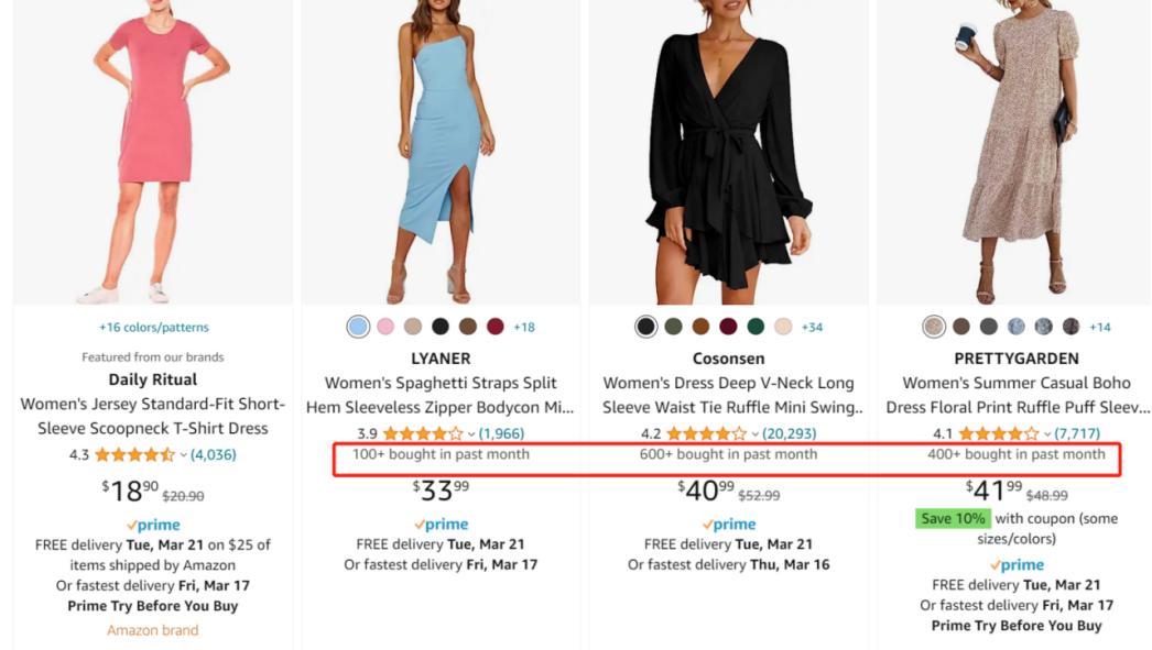 在搜索结果页面上,某些产品listing的标题底下,赫然出现了“上个月的具体销量”。