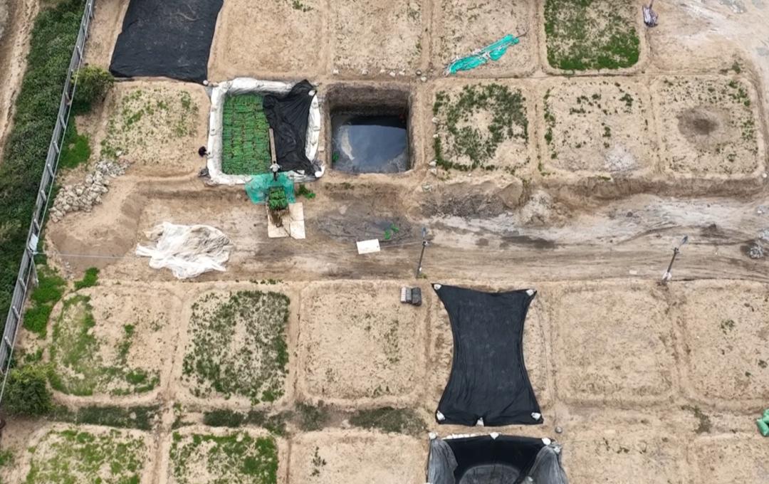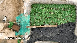 在锦桂果蔬腌制厂的后院, 有一片挖有数十个土坑的空地,部分在使用的土坑里,密密麻麻地堆积着数层厚的芥菜。