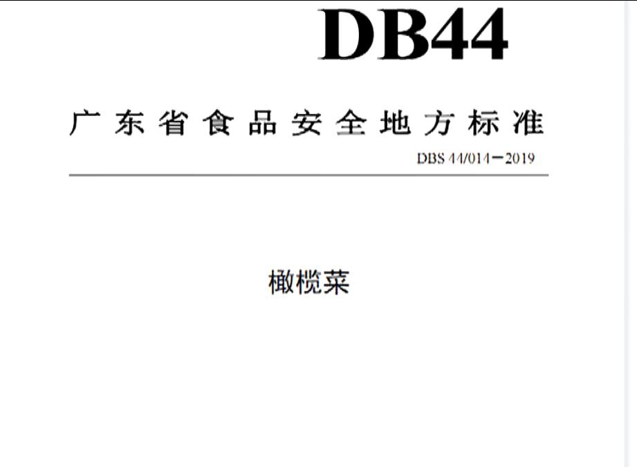 2020年7月31日, 广东省卫生健康委员会发布了《广东省食品安全地方标准橄榄菜》(DBS 44 014-2019)其中, 对橄榄菜制作的原辅料提出了明确要求:“应新鲜、无霉变腐烂现象,并符合相应的食品安全国家标准。”