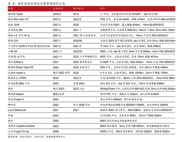 2019年,保时捷Taycan在全球首次推出800V高电压电气架构,搭载800V直流快充系统并支持350kW大功率快充。随后,高压快充路线技术路线迅速得到了车企的青睐。
