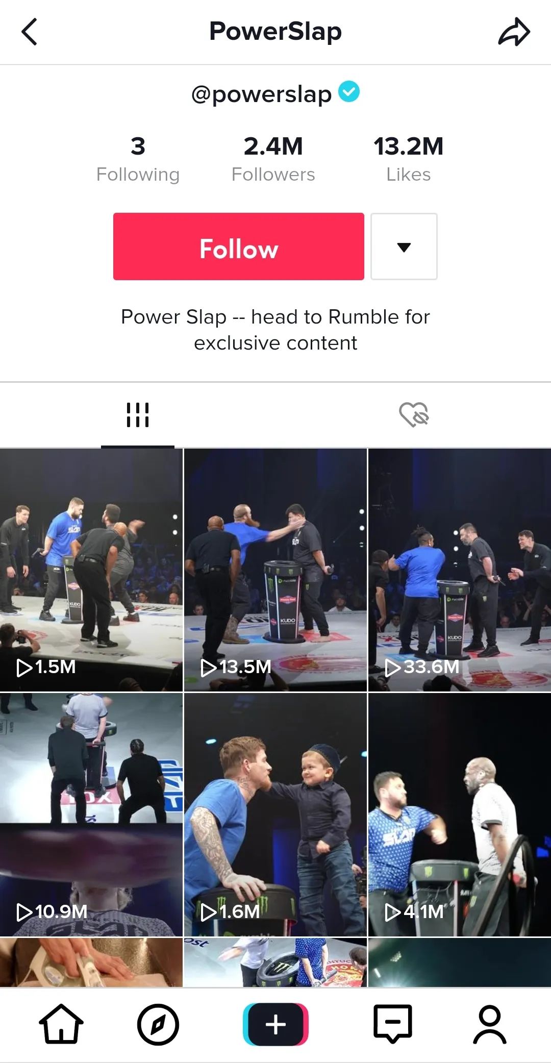 截至目前,TikTok上带 #powerslap标签的内容播放量已经突破了10亿大关(截至发稿已有11亿播放),平均播放量可以直接叫板北美四大联盟联赛中社媒流量最高的NBA;与此同时,官方账号关注人数也达到了240万,甚至超过了NHL(230万)。