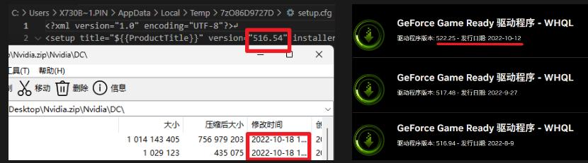 像世超现在正在用的一款游戏本,同一个驱动,OEM 官网提供的 516.54 版驱动,最终修订时间要 比英伟达 522.25 公版驱动要晚一周左右。 。 。