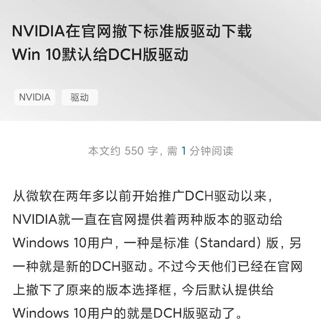 所以在那段时间里,同时存在两种驱动:一种是从官网上默认下载的传统版,另一种则是 DCH 版。