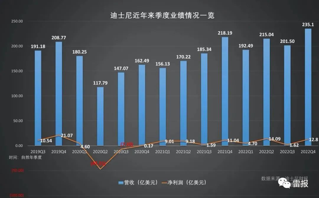 流媒体业务是迪士尼非常重要和重视的业务之一,于2019年被推出,但除了该季度Disney+的订阅用户相比上一个季度出现下滑外,目前迪士尼的流媒体业务的亏损也已超过80亿美元。此外,整体来看,自2019年三季度开始,迪士尼的季度业绩也多有环比下滑的时候,净利润也处于波动之中,过去的2022年,情况也不甚乐观。